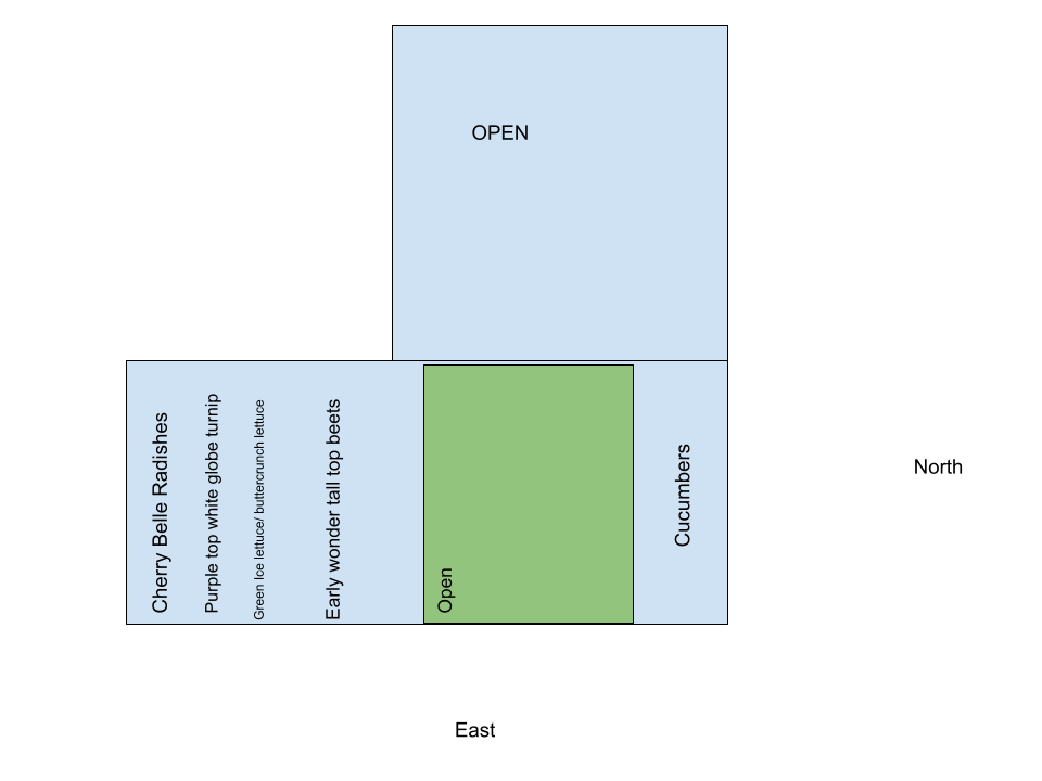 Here’s an image of what I provided the bot to help me decide what to plant where. I told the bot all the seeds I had and the orientation of my beds. That helped guide the sequence of radishes and other salad bar items. The 4x4 square box is now full of peppers, tomatoes, and tomatillos.